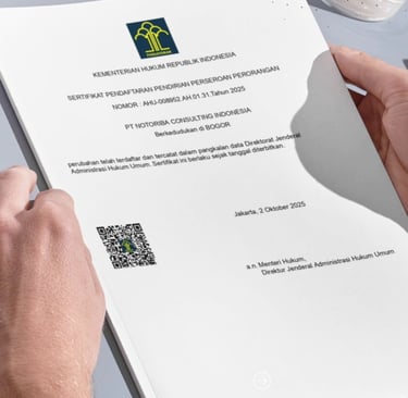 PT. Notoriba Consulting Indonesia berizin resmi dan terdaftar di Kemenkumham, NOTORIBA telah bergerak di bidang ini lebih dari 5 tahun dan bekerja sama dengan tim ahli/profesional yang telah berpengalaman di bidang nya.